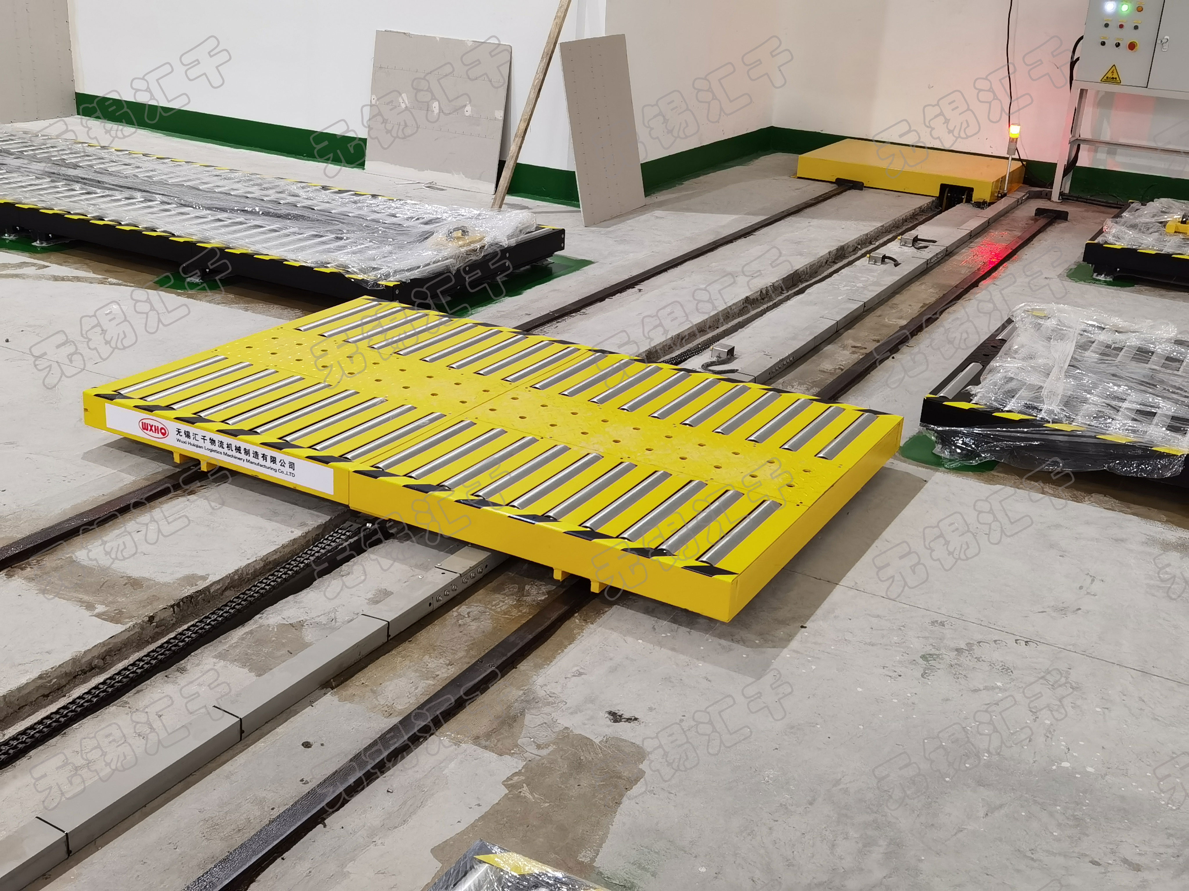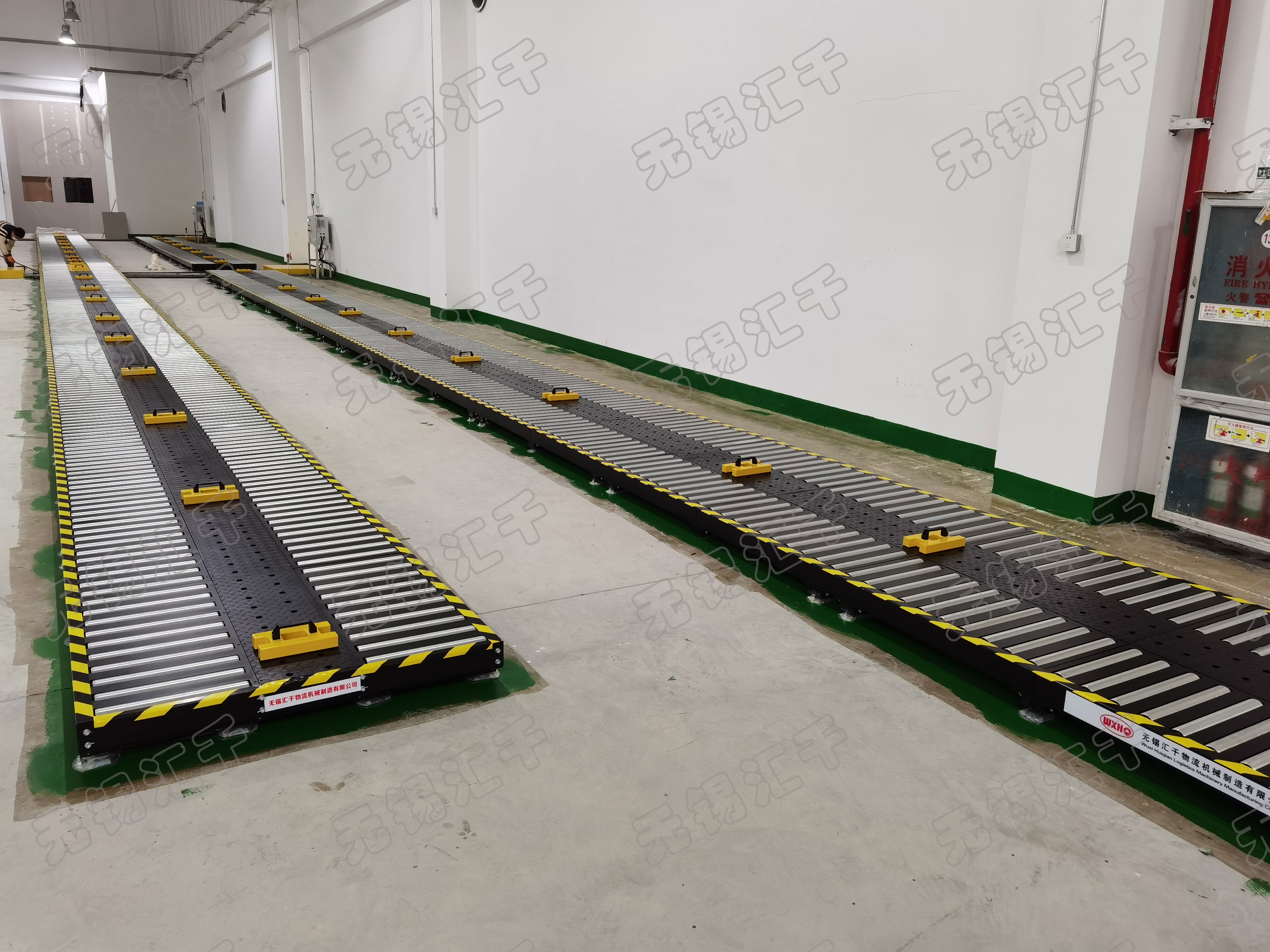 该输送线为地面辊道输送线,主要输送高压柜、低压柜等大型重型物品,可以很大程度上节省人力物力